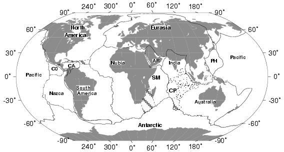 (PH), South American, Somalian (SM) plates. Several smaller plates whose