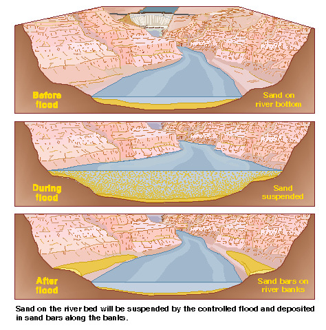 Without periodic floods the sand will move off the shores and into deeper water and clear the loads dumped at Little Colorado River that are presently creating worse rapids than pre dam conditions
