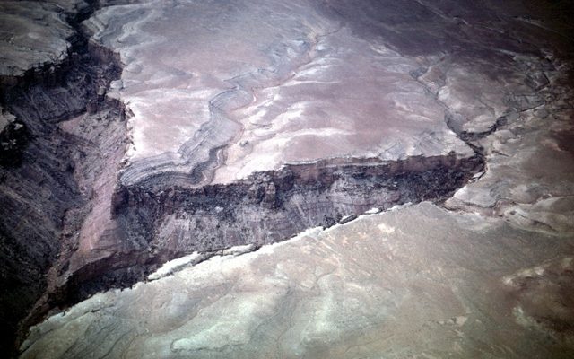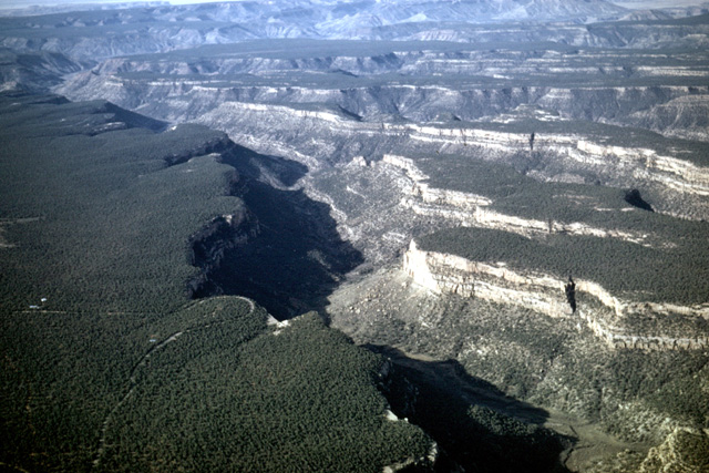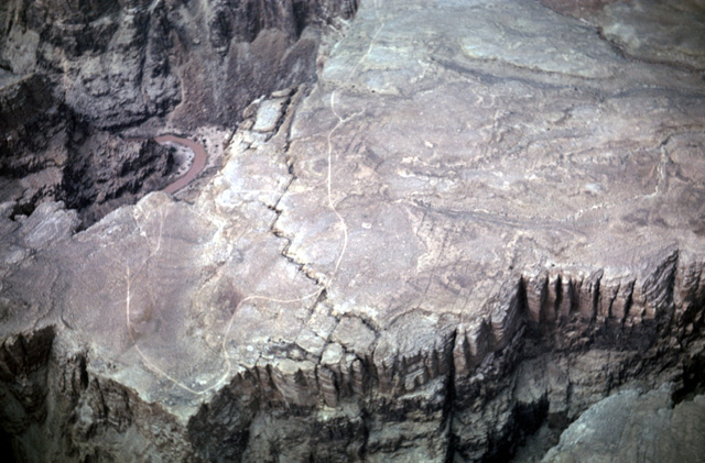 119-07: Jointing along Little Colorado River, northwest of Cameron, AZ. Note the river at upper left that is 2000 feet below the rim. (12Apr66)