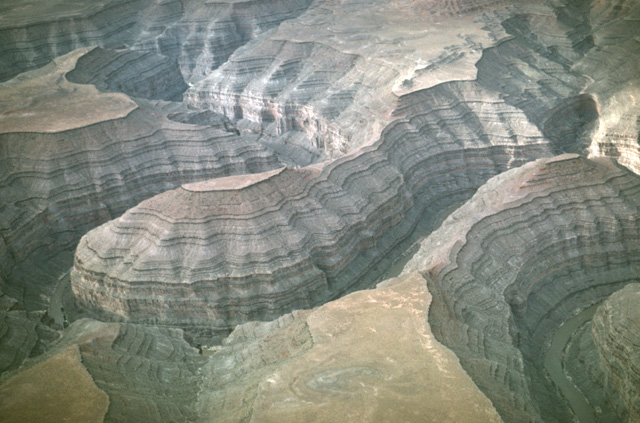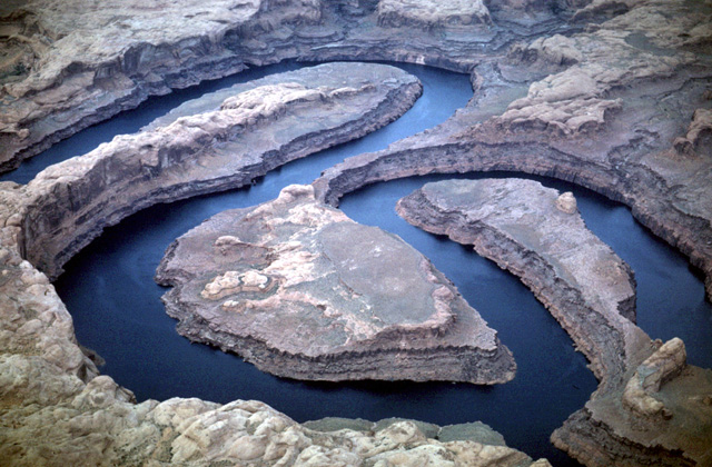 121-03: San Juan River meanders just upstream from the Colorado River, UT. Valley flooded by Powell Reservoir. (12Apr66)