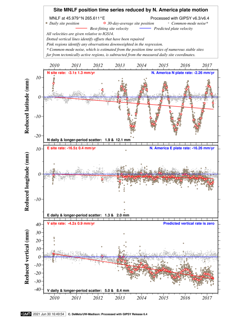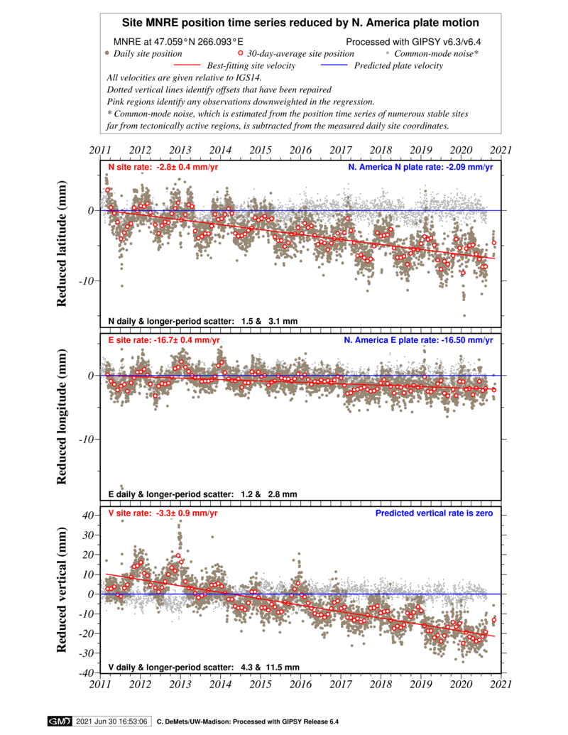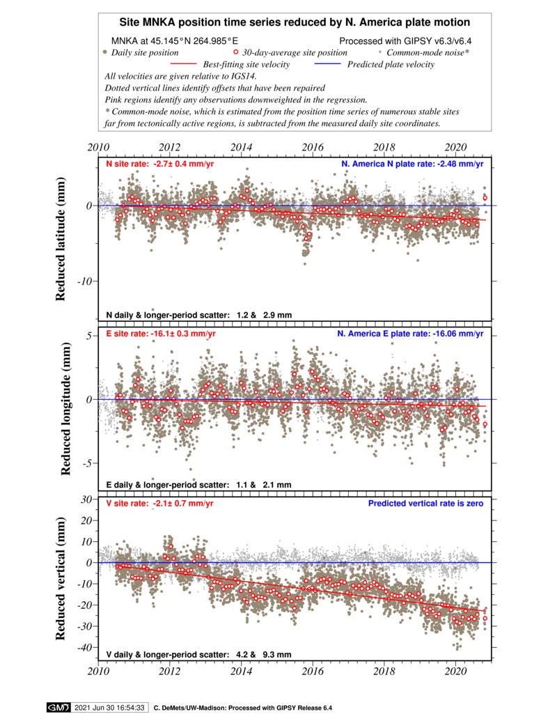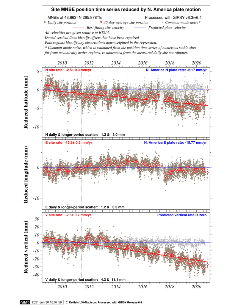 and elevations estimated from processing of daily GPS data at UW-Madison (information about