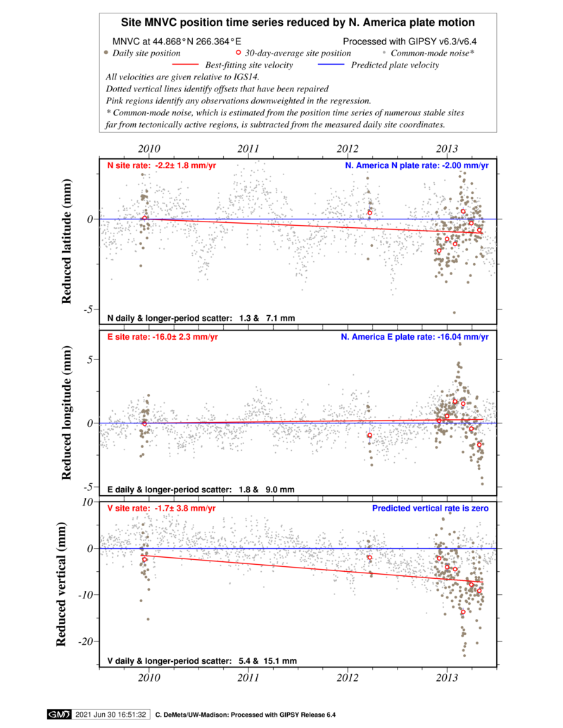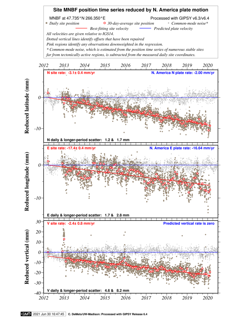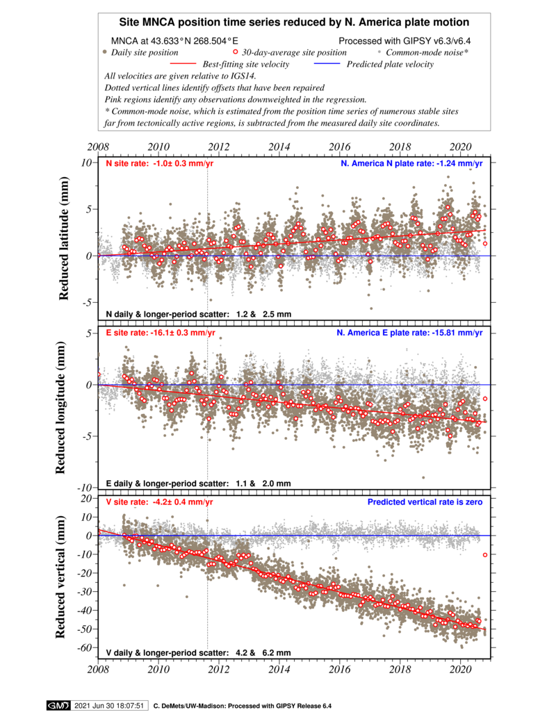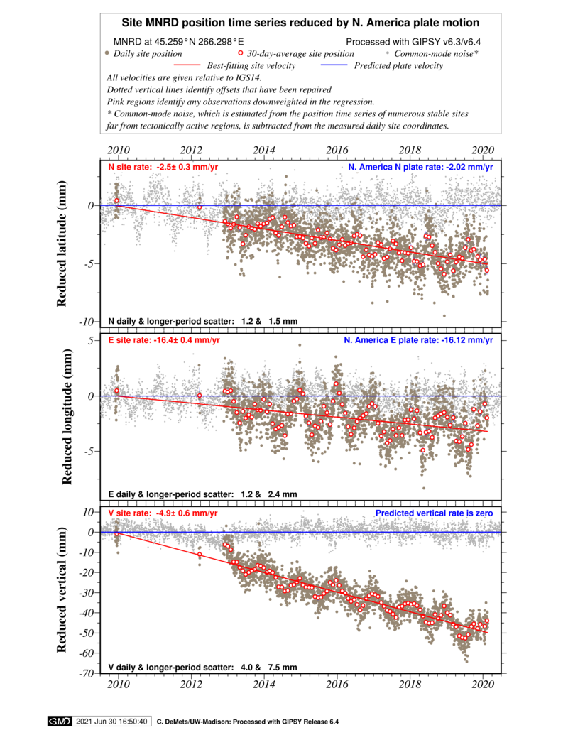 and elevations estimated from processing of daily GPS data at UW-Madison (information about