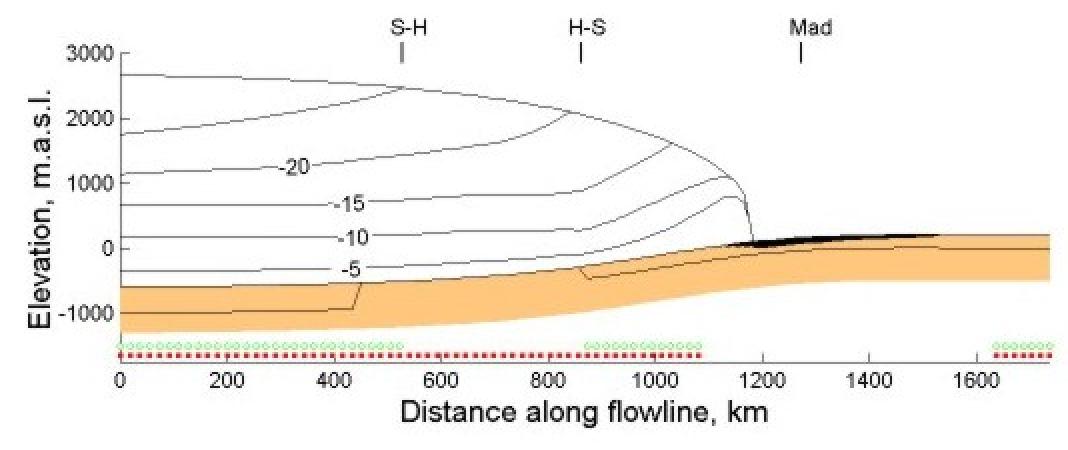 permafrost distribution underneath the ice sheet in order to